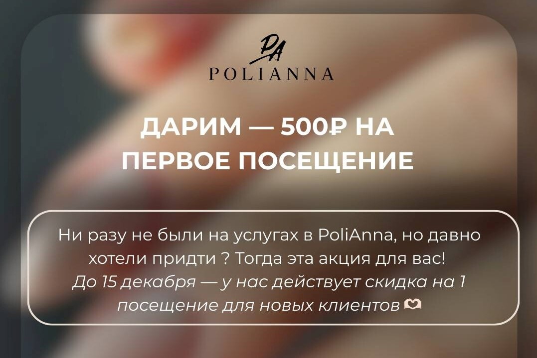 Преимущества: Салон Polianna это замечательное место! Здесь работают отличные мастера! Ваши ногти и брови в надежных руках если вы доверитесь профессионалам этого салона! Спасибо администраторам, они всегда готовы помочь и найти удобное время для посещения. Особая благодарность мастеру Елене ❤️она всегда посоветует дизайн и делает все очень качественно! Атмосфера, мастера - все на высоком уровне!!!